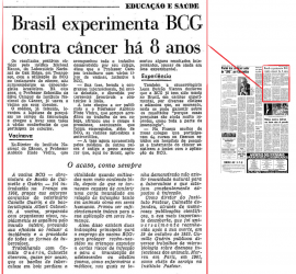 Há 50 anos o Jornal O Globo publicava matérias sobre os estudos com BCG para o combate ao câncer. Em 24/09/1972, o Médico Michel Hanna anunciava os resultados favorável de um tratamento para o câncer, baseado na imunoterapia com o uso de BCG nos Estados Unidos (USA). No dia seguinte, […]